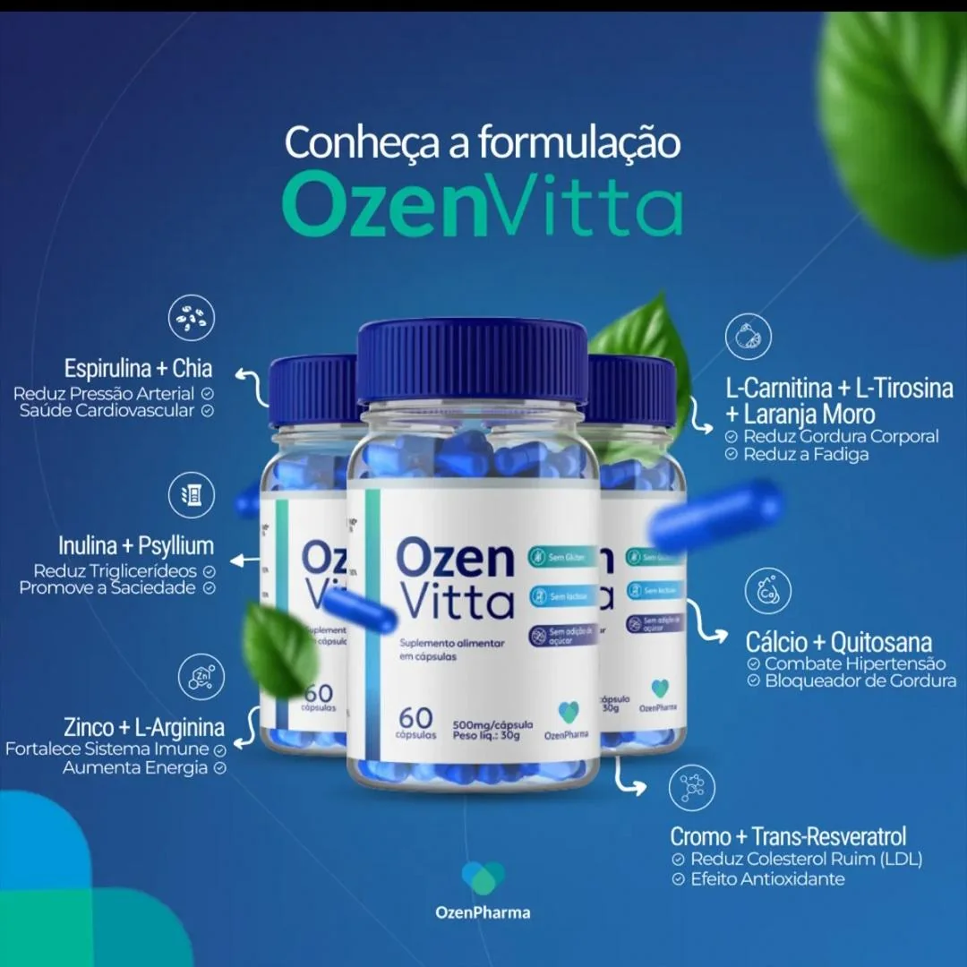 O OZENFIT CAPS foi desenvolvido por especialistas na saúde do corpo e promove emagrecimento através da combinação de ativos exclusivos, Cromo Vitamina C, Psyllium, Óleo de Cartamo, Curcuma e Cafeina, através de uma fórmula natural, promove a queima de gordura, saciedade e eliminação de gorduras.